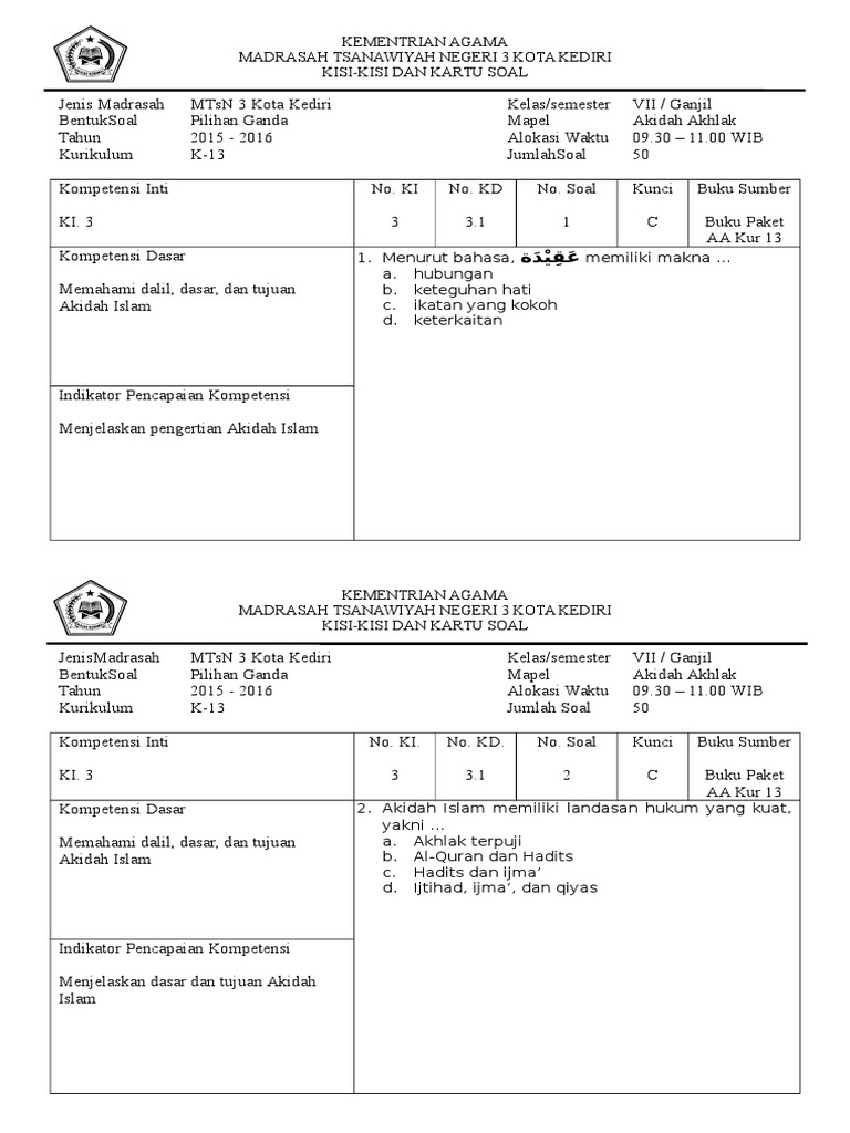 Soal Akidah Akhlak Kelas 9 Semester 2 Dan Kunci Jawaban Jawabanku Id from image.slidesharecdn.com Check spelling or type a new query. We did not find results for: Maybe you would like to learn more about one of these? Soal aqidah kelas 9 semester 1.